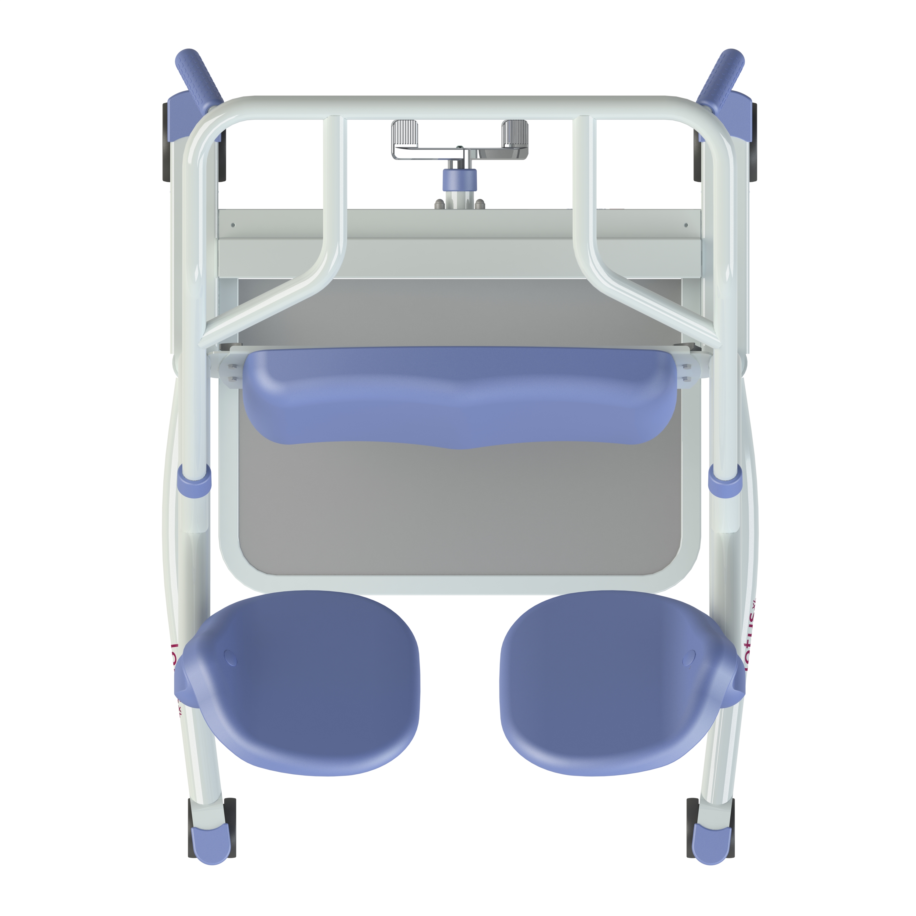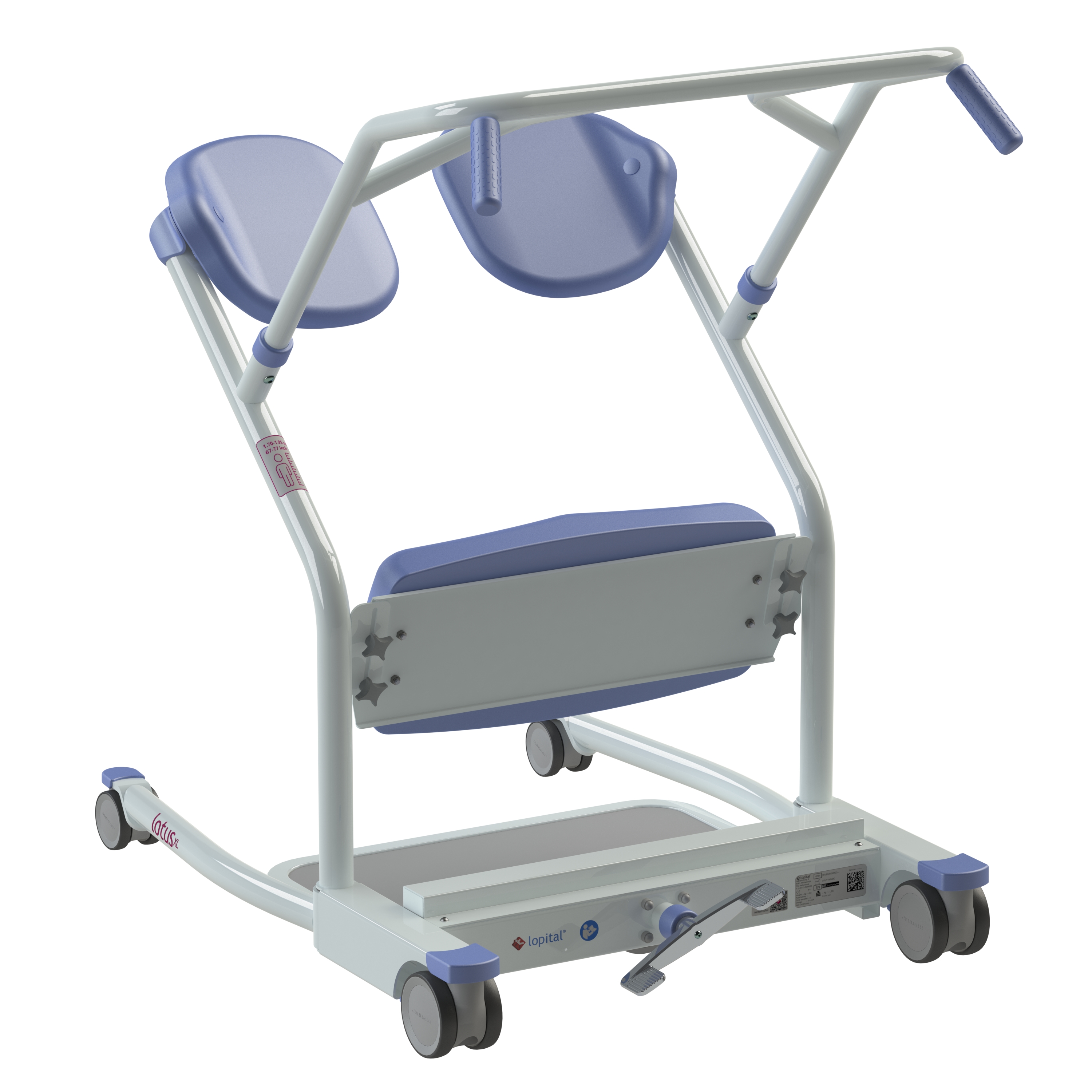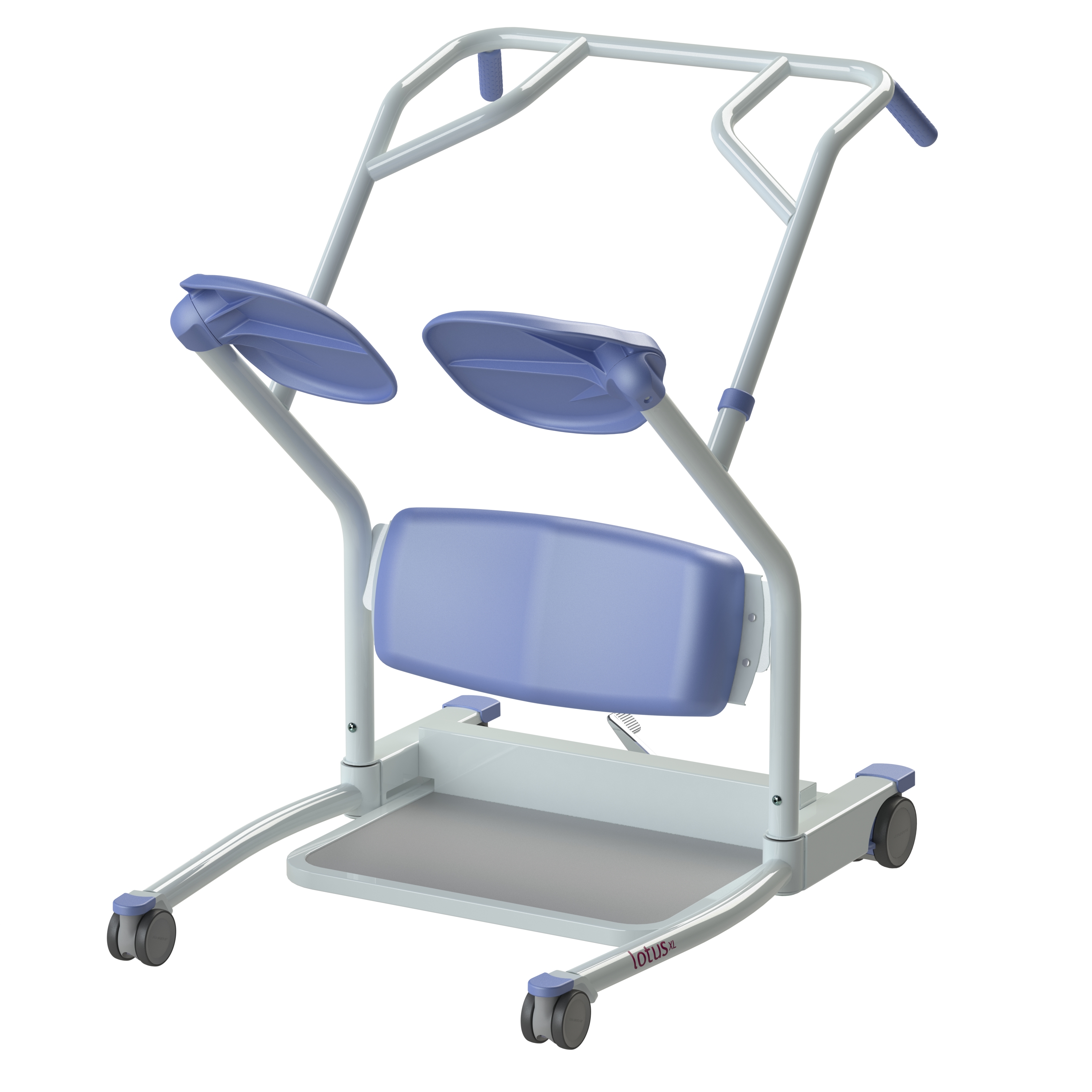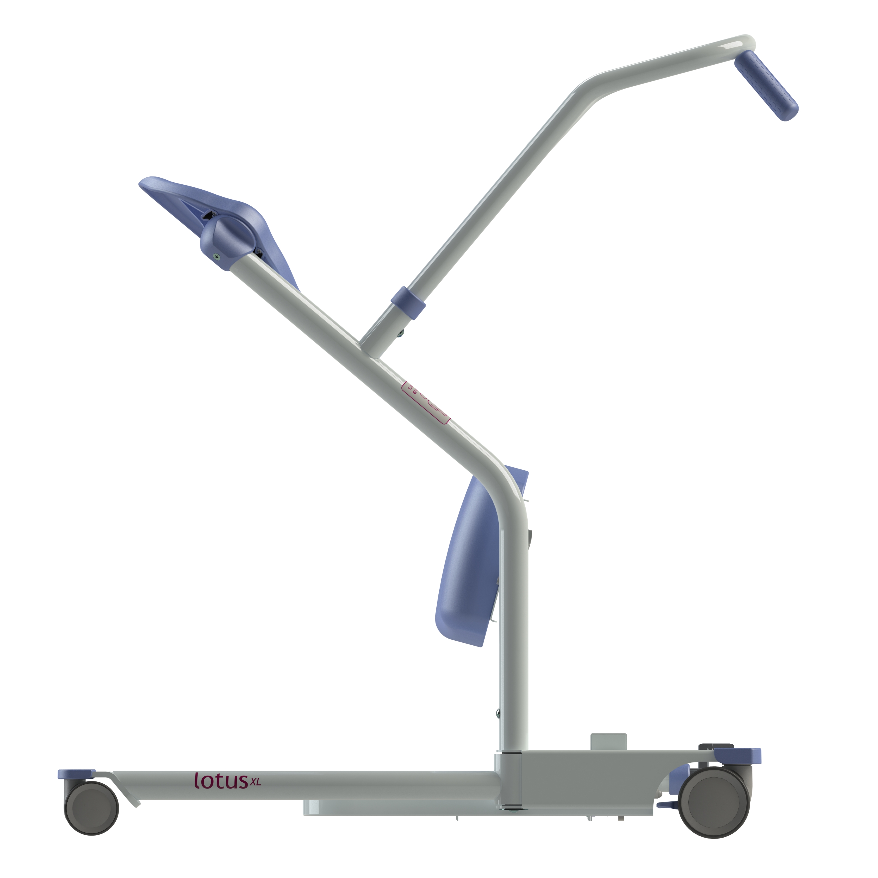 Der Lotus ist eine aktive Aufstehhilfe für Personen, die noch selbstständig stehen können und über ausreichende Rumpfstabilität verfügen, aber nicht mehr oder nur schwer laufen können. Die Pflegekraft kann den Patienten, nachdem er/sie auf dem Lotus Platz genommen hat, sicher und effizient transferieren. Der Lotus ist für kurze Transfers gedacht, zum Beispiel vom Bett zur Toilette. Da der Patient in einer aktiven Sitzposition Platz nimmt, ist weniger Kraft erforderlich, um wieder in eine stehende Position zu gelangen. Darüber hinaus ist die Oberfläche mit einer antibakteriellen Beschichtung versehen, die zu einer hygienischen Pflegeumgebung beiträgt. Für sowohl den Patienten als auch die Pflegekraft ist der Komfort optimal. Der Lotus ist mit wegklappbaren Sitzteilen, flexiblen Unterschenkelstützen und einer Spreizvorrichtung ausgestattet. Die Spreizvorrichtung sorgt dafür, dass der Lotus nah an den Patienten herangefahren werden kann, sodass er/sie aktiv auf dem Lotus Platz nehmen kann. Der Lotus fördert die aktive Teilnahme des Patienten an Transfers. Dieses Mithelfen trainiert die Muskeln und fördert somit die Selbstständigkeit.