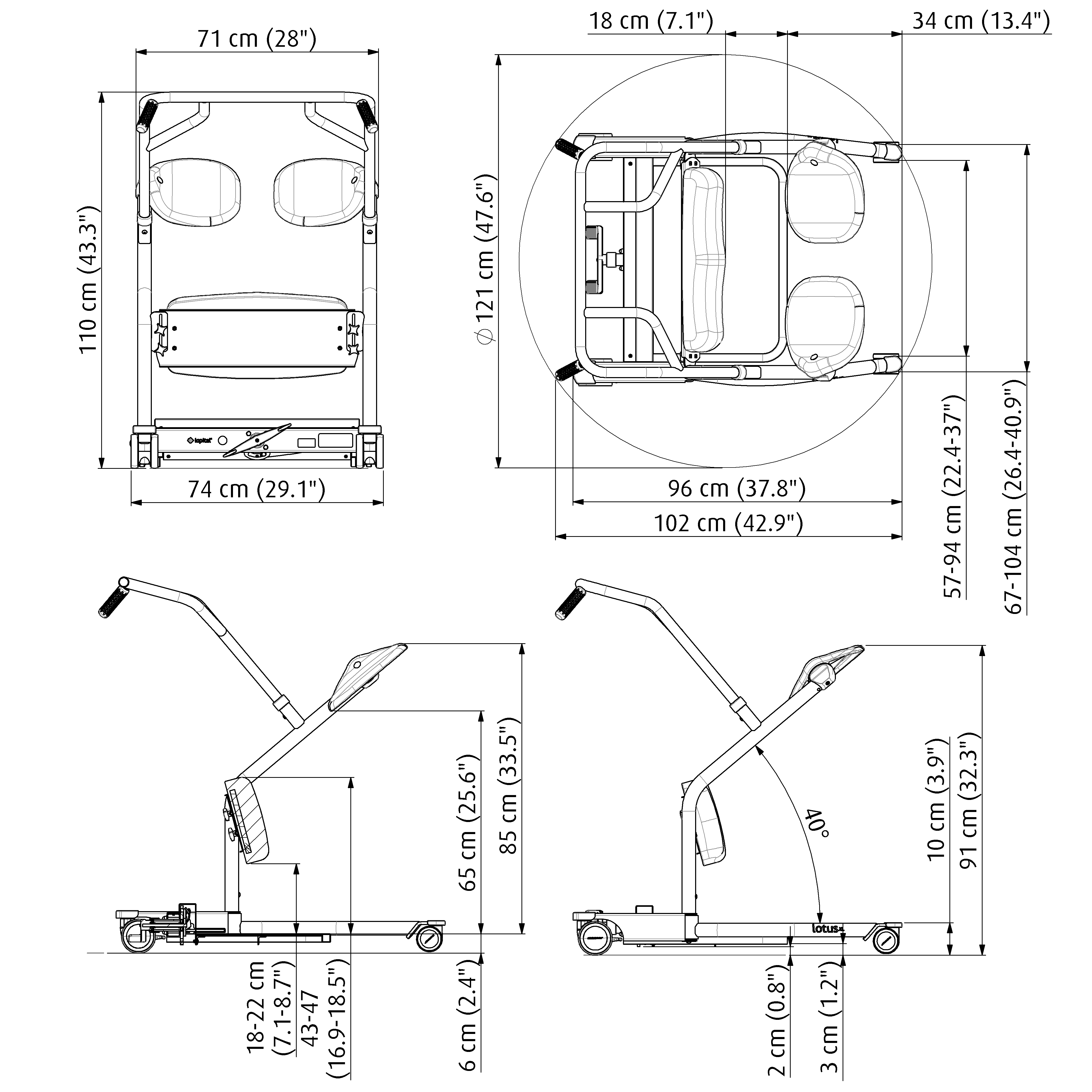 Der Lotus und Lotus XL sind für Benutzer mit einer durchschnittlichen Körpergröße zwischen 1.70 und 1.95 m konzipiert.